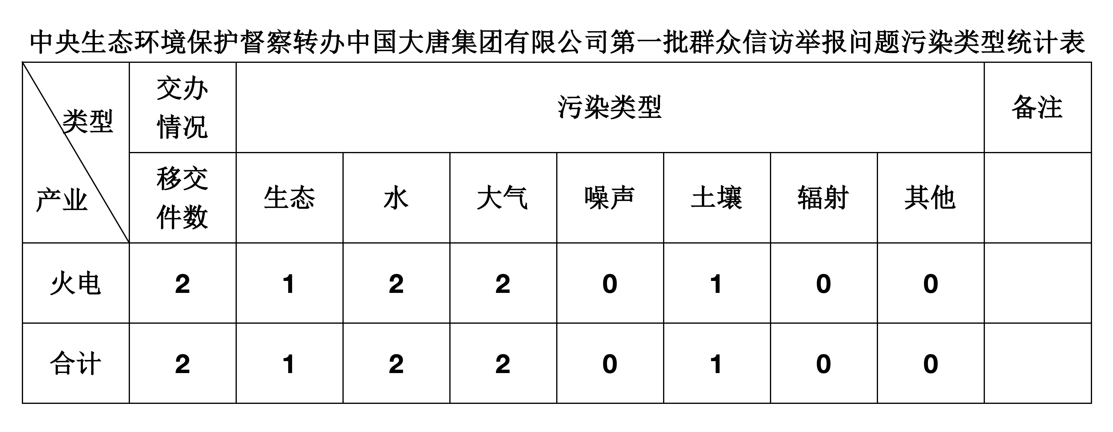 2025年5月30日,中央第七生態環境保護督察組向中國大唐集團有限公司移交第一批群眾信訪舉報件,共計2件,均為來電舉報件,涉及生態問題1個、水問題2個、大氣問題2個、土壤問題1個。所有舉報件辦理工作已第一時間進入調查核實辦理程序,辦理情況將按照相關要求反饋督察組,并及時向社會公開。