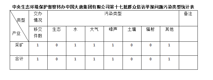 2025年6月25日,中央第七生態環境保護督察組向中國大唐集團有限公司移交第十七批群眾信訪舉報件,共計1件,為來電舉報1件,涉及水問題1個、大氣問題1個、噪聲問題1個、其他問題1個。所有舉報件辦理工作已第一時間進入調查核實辦理程序,辦理情況將按照相關要求反饋督察組,并及時向社會公開。