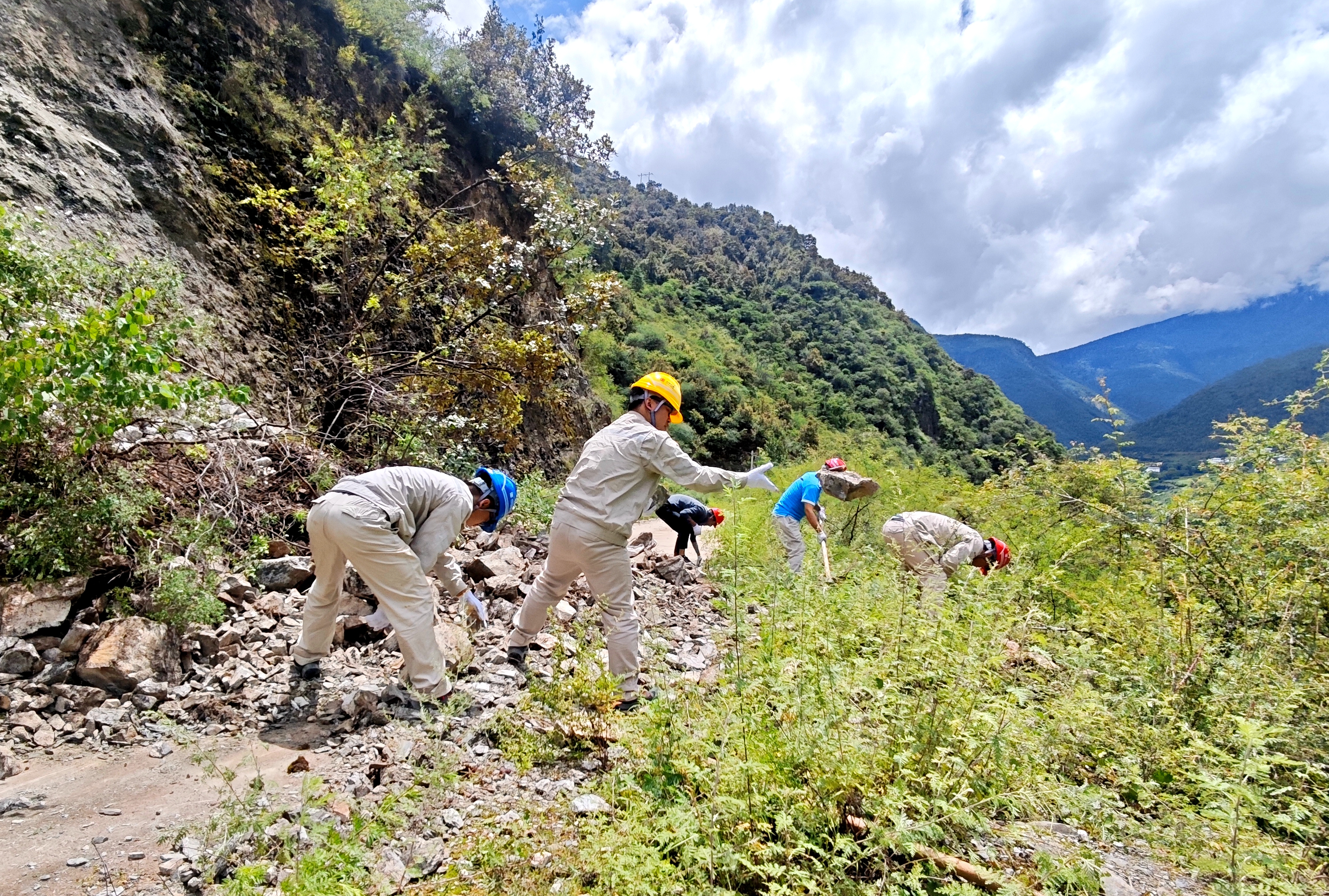 上游來水不斷增加,大壩水位持續增高,崗一水電廠迅速啟動應急預案,一支由運行和維護人員組成的“搶險突擊隊”火速成立。突擊隊每天兩次徒步穿越險象環生的滑坡區,冒著持續降雨和次生災害的風險,艱難往返于生活區與大壩之間。4公里的路程,每次上行需耗時約45分鐘。泥濘濕滑的山路上,每一步都是意志與體力的考驗。正是他們頑強的意志,堅定的腳步,踏出了一條守護大壩和下游安全的“生命通道”,確保每日閘門操作的精準執行與水情信息的及時報送,真正踐行“缺氧不缺精神,海拔高境界更高”的錚錚誓言。