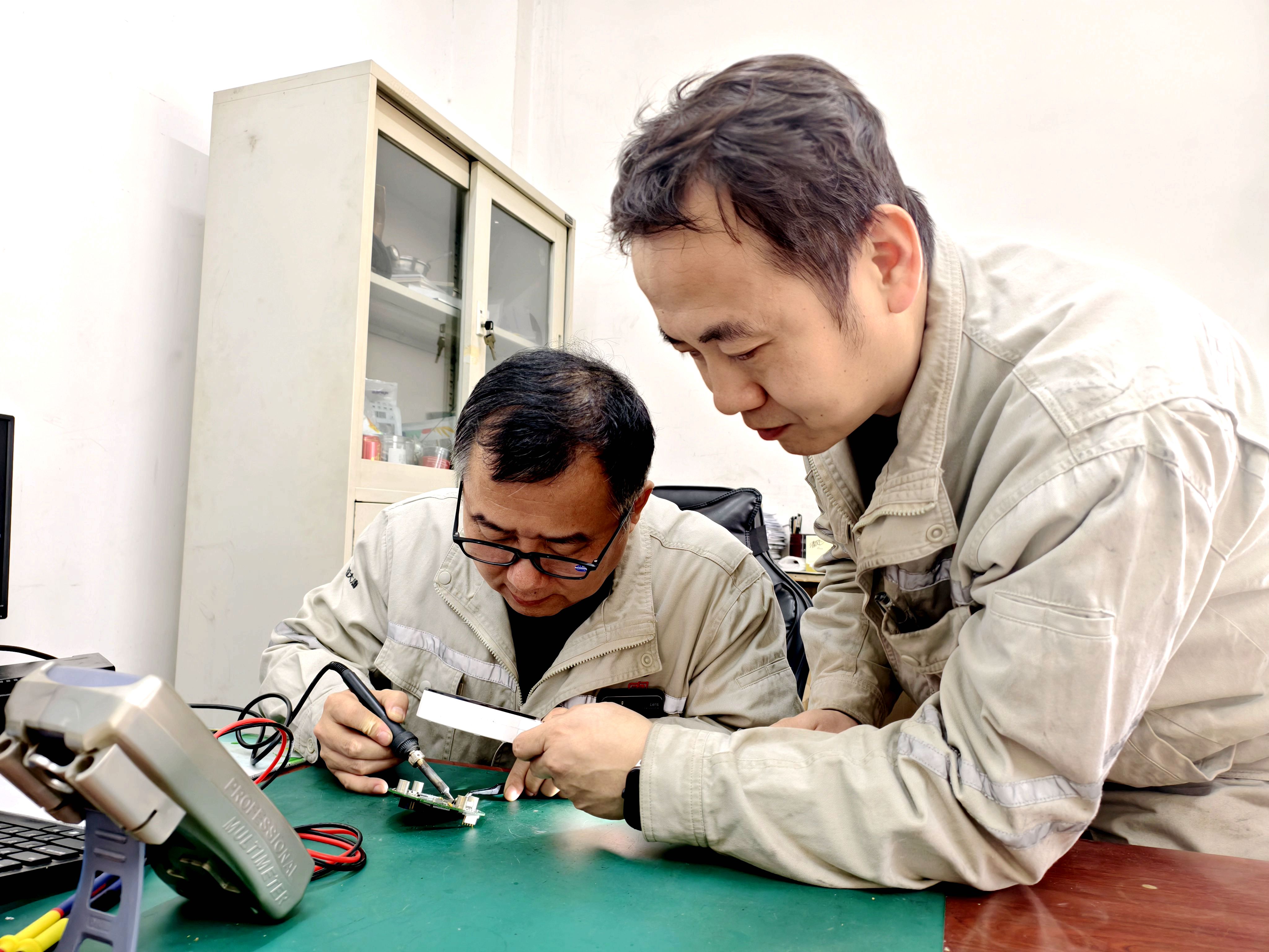手術(shù)開(kāi)始!檢修間里格外安靜,依稀聽(tīng)見(jiàn)操作時(shí)的細(xì)微聲響。只見(jiàn)他們手持放大鏡,雙眼緊緊聚焦在電路板上,每一個(gè)操作都精準(zhǔn)而細(xì)致。他們小心翼翼地清理燒毀的殘留部件,逐一識(shí)別新元器件的正負(fù)極。既要用力均勻讓元器件牢牢固定在電路板上,不能出現(xiàn)虛焊情況;又要精準(zhǔn)控制電烙鐵的火候保證焊錫充分融化貼合,嚴(yán)防高溫對(duì)周邊元器件造成二次傷害,影響整體電路運(yùn)行。