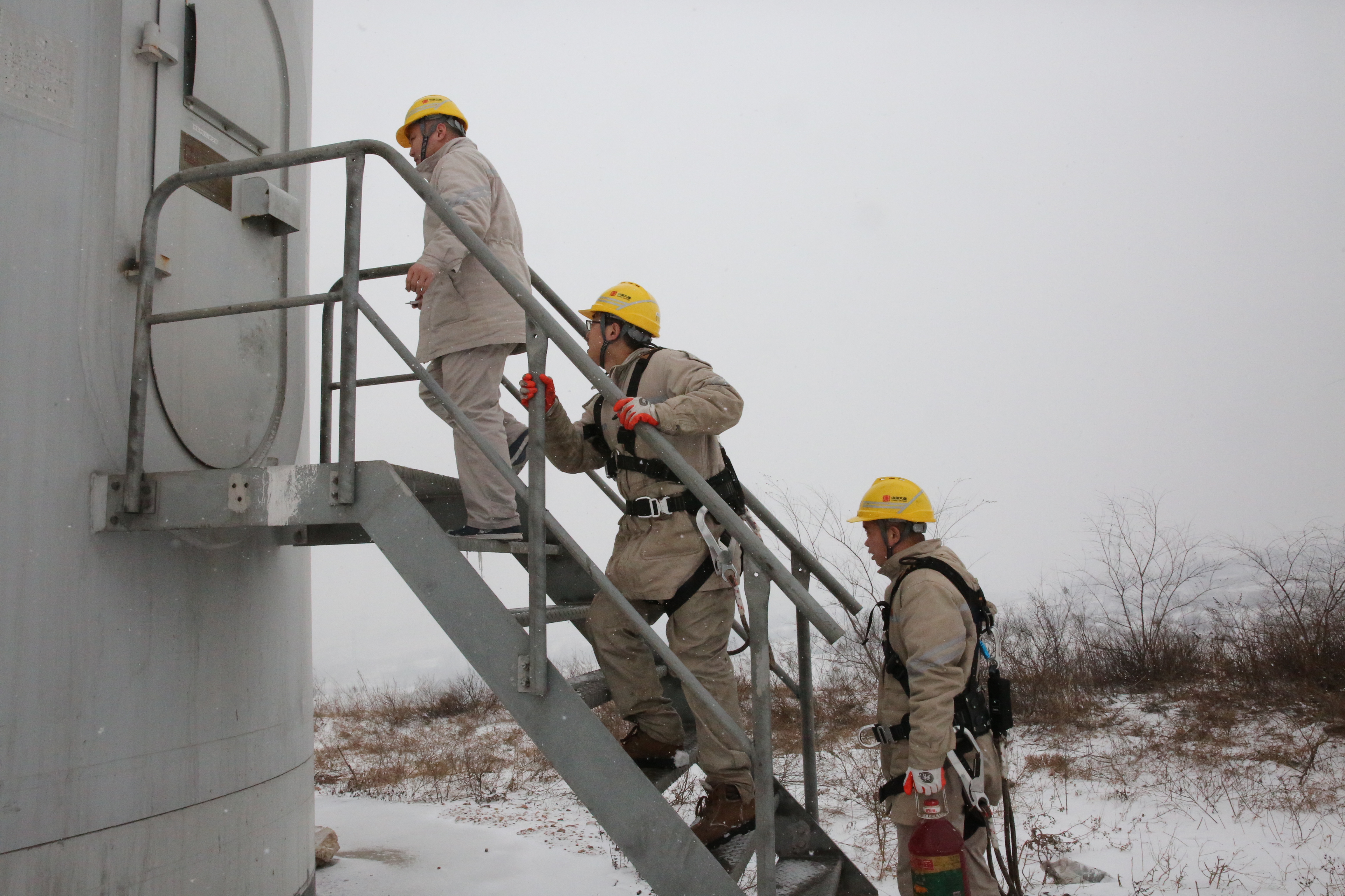 季節交替的時節,三門峽的山上還飄著雪花,宋慶樂等三名運維職工迅速穿好連體衣、戴好安全帽,毫不遲疑地出了升壓站。