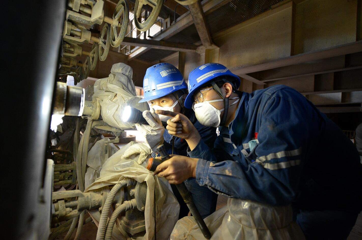 鍋爐專業人員檢查減溫水閥門