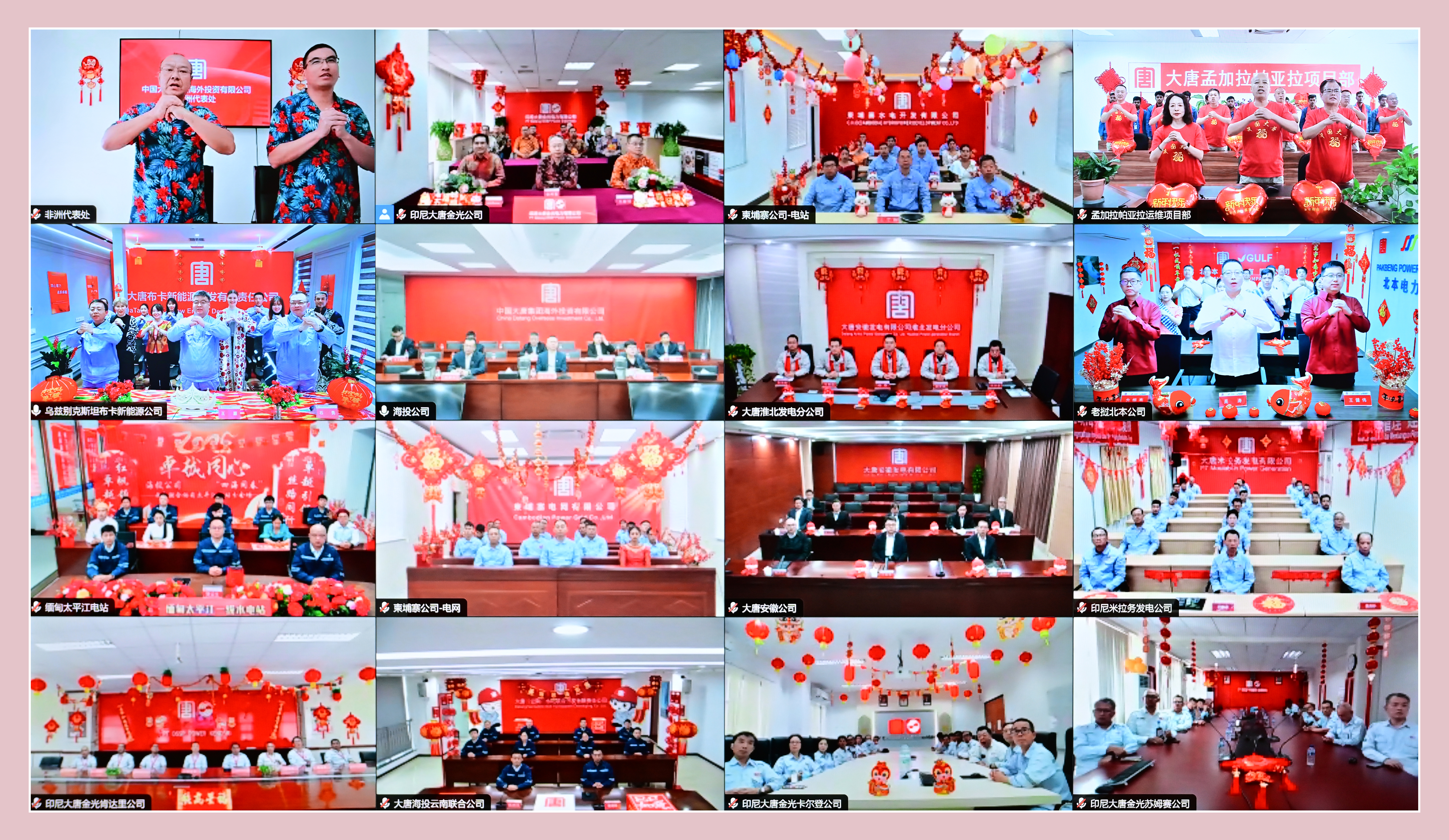 本網訊? “可敬的海外同志們,大家辛苦了!”“祝愿大家度過一個祥和喜慶的春節,祝愿大家在海外工作平平安安、順順利利、心想事成!”1月26日,在農歷乙巳蛇年來臨之際,中國大唐集團有限公司召開2025年境外機構新春慰問會。集團公司黨組書記、董事長鄒磊以視頻連線方式,代表集團公司黨組向奮戰在境外一線的干部職工及家屬拜年,向他們致以真切的關懷慰問及美好的新春祝福。